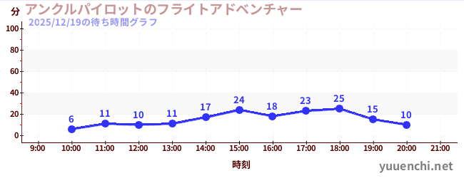 2025/12/19の待ち時間グラフ (アンクルパイロットのフライトアドベンチャー)
