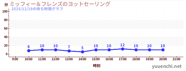 2025/12/19の待ち時間グラフ (ミッフィー&フレンズのヨットセーリング)