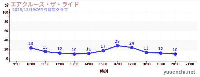 2025/12/19の待ち時間グラフ (エアクルーズ・ザ・ライド)