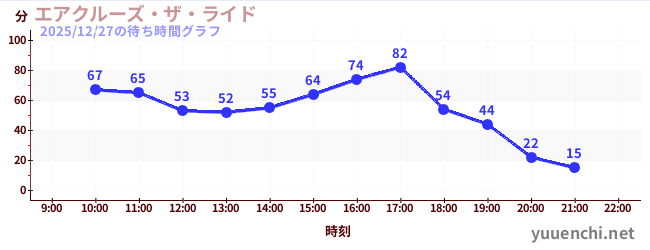 2025/12/27の待ち時間グラフ (エアクルーズ・ザ・ライド)