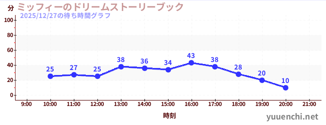 2025/12/27の待ち時間グラフ (ミッフィーのドリームストーリーブック)