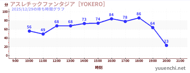 2025/12/29の待ち時間グラフ (アスレチックファンタジア[YOKERO])