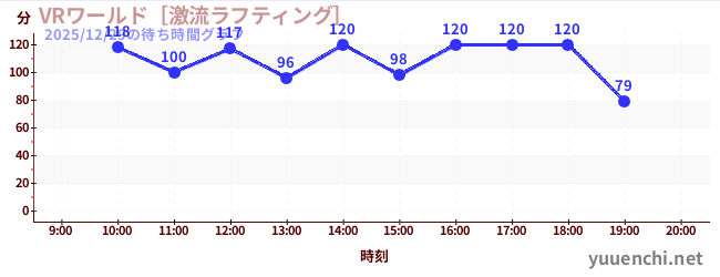 2025/12/29の待ち時間グラフ (VRワールド[激流ラフティング])