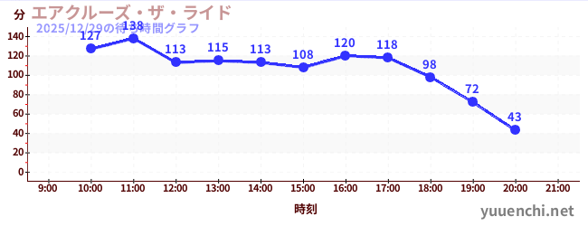 2025/12/29の待ち時間グラフ (エアクルーズ・ザ・ライド)