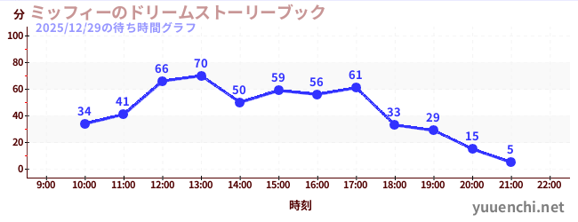 2025/12/29の待ち時間グラフ (ミッフィーのドリームストーリーブック)