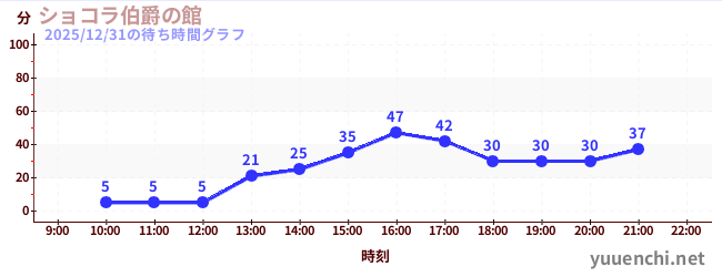 2025/12/31の待ち時間グラフ (ショコラ伯爵の館)