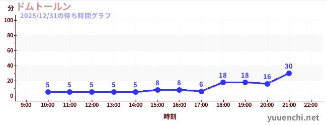 2025/12/31の待ち時間グラフ (ドムトールン)
