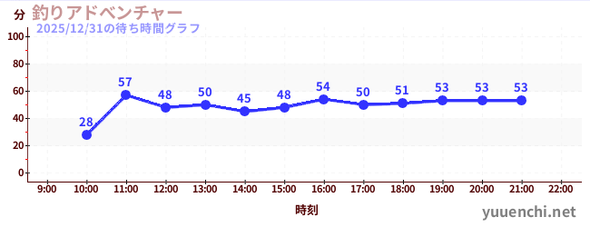 2025/12/31の待ち時間グラフ (釣りアドべンチャー)