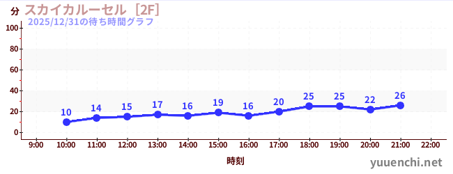 2025/12/31の待ち時間グラフ (スカイカルーセル[2F])