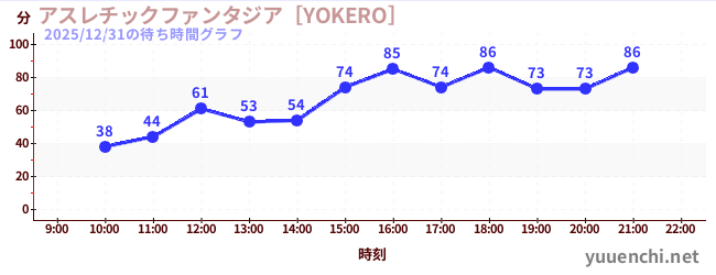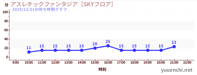 2025/12/31の待ち時間グラフ (アスレチックファンタジア[YOKERO])