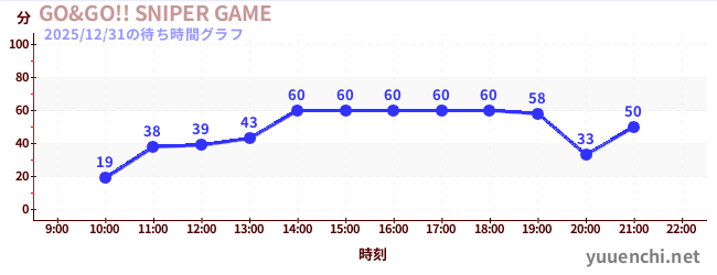 2025/12/31の待ち時間グラフ (GO&GO!! SNIPER GAME)