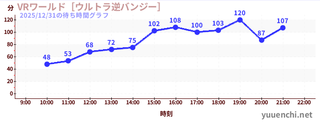 2025/12/31の待ち時間グラフ (VRワールド[ウルトラ逆バンジー])
