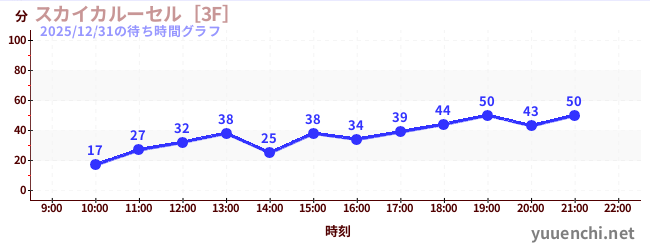 2025/12/31の待ち時間グラフ (スカイカルーセル[3F])