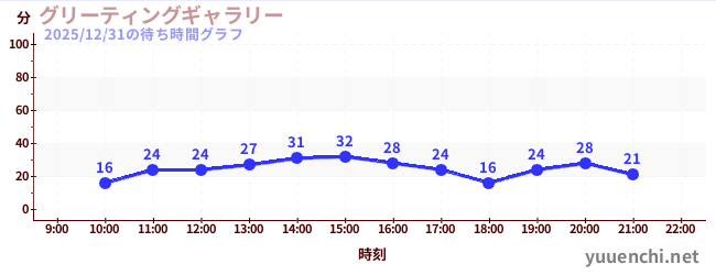2025/12/31の待ち時間グラフ (グリーティングギャラリー)