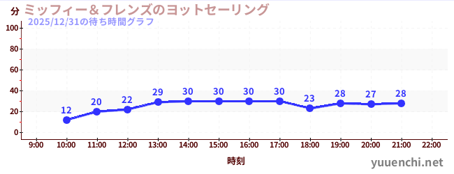 2025/12/31の待ち時間グラフ (ミッフィー&フレンズのヨットセーリング)