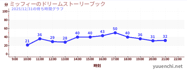 2025/12/31の待ち時間グラフ (ミッフィーのドリームストーリーブック)