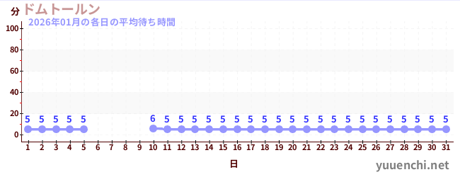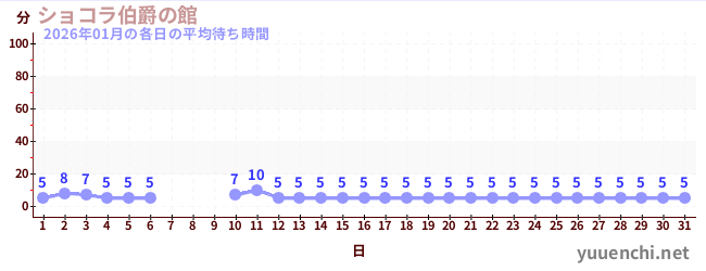2026/01の一日平均待ち時間 (ショコラ伯爵の館)