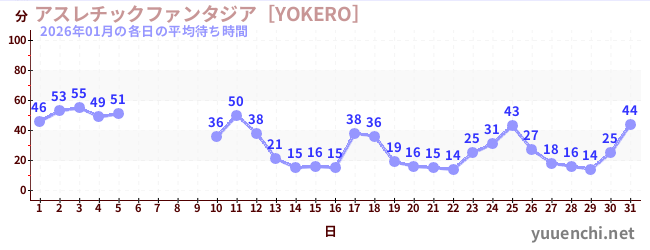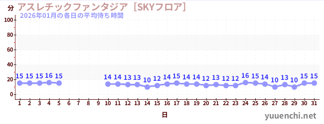 2026/01の一日平均待ち時間 (アスレチックファンタジア[YOKERO])