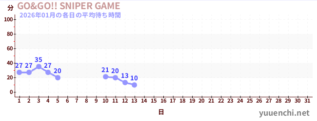 2026/01の一日平均待ち時間 (GO&GO!! SNIPER GAME)