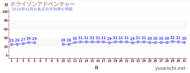 2026/01の一日平均待ち時間 (ホライゾンアドベンチャー)