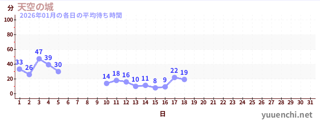 2026/01の一日平均待ち時間 (宇宙のファンタジア)