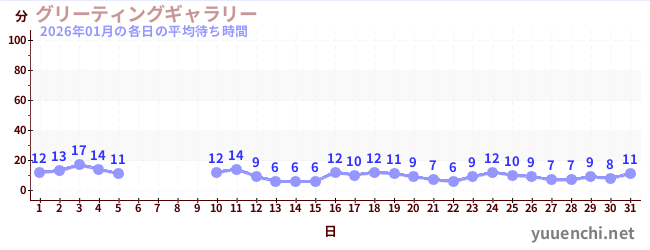 2026/01の一日平均待ち時間 (グリーティングギャラリー)