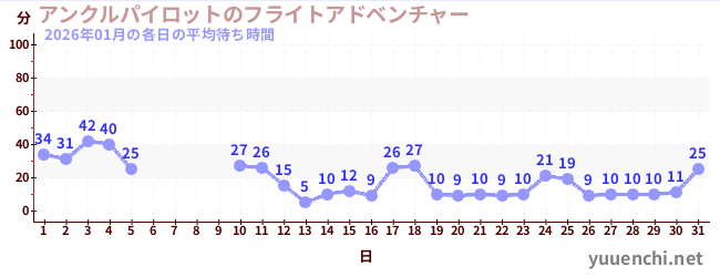 2026/01の一日平均待ち時間 (アンクルパイロットのフライトアドベンチャー)