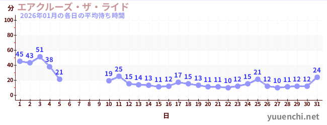 2026/01の一日平均待ち時間 (エアクルーズ・ザ・ライド)