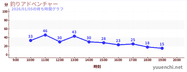 2026/01/05の待ち時間グラフ (釣りアドべンチャー)