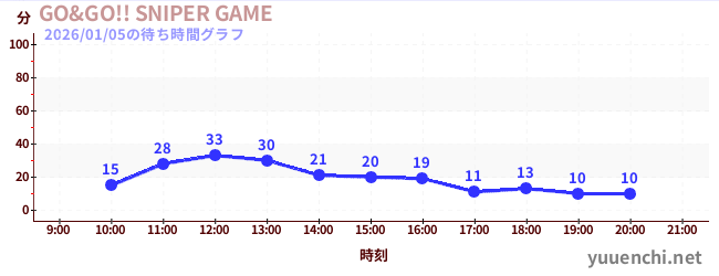 2026/01/05の待ち時間グラフ (GO&GO!! SNIPER GAME)