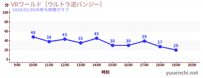 2026/01/05の待ち時間グラフ (VRワールド[ウルトラ逆バンジー])