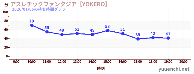 2026/01/05の待ち時間グラフ (アスレチックファンタジア[YOKERO])