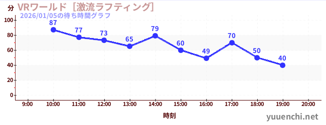 2026/01/05の待ち時間グラフ (VRワールド[激流ラフティング])