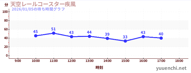 2026/01/05の待ち時間グラフ (天空レールコースター疾風)