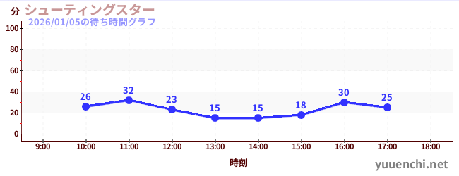 2026/01/05の待ち時間グラフ (シューティングスター)