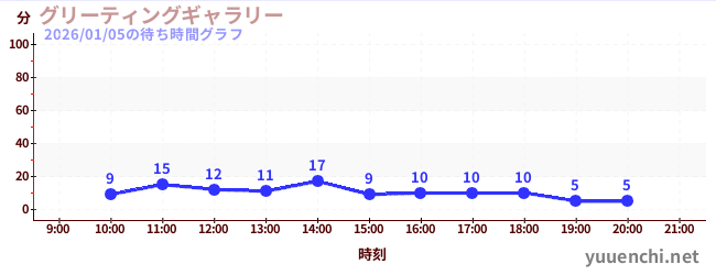 2026/01/05の待ち時間グラフ (グリーティングギャラリー)