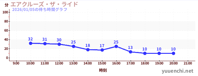 2026/01/05の待ち時間グラフ (エアクルーズ・ザ・ライド)