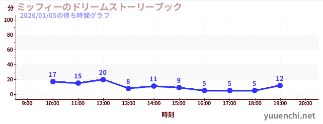 2026/01/05の待ち時間グラフ (ミッフィーのドリームストーリーブック)