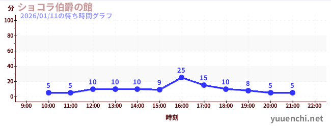 2026/01/11の待ち時間グラフ (ショコラ伯爵の館)