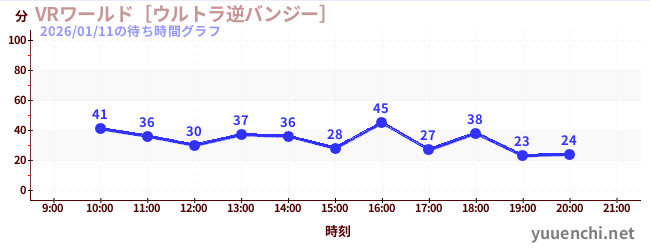 2026/01/11の待ち時間グラフ (VRワールド[ウルトラ逆バンジー])