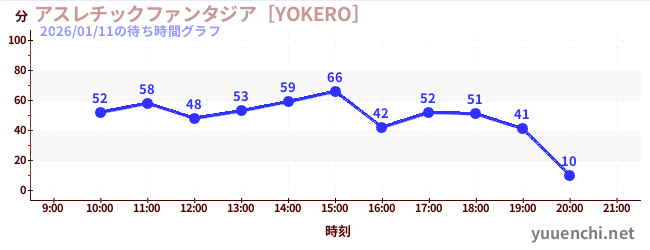 2026/01/11の待ち時間グラフ (アスレチックファンタジア[YOKERO])