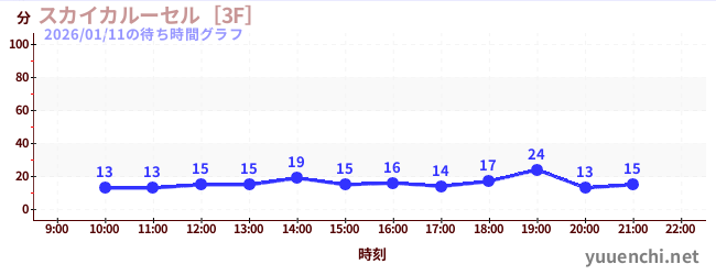 2026/01/11の待ち時間グラフ (スカイカルーセル[3F])