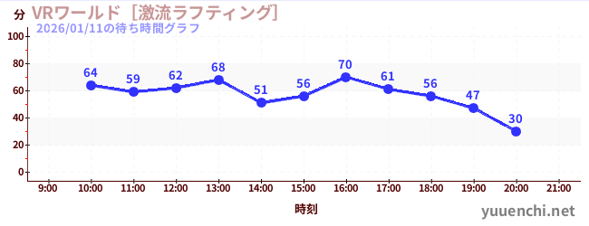 2026/01/11の待ち時間グラフ (VRワールド[激流ラフティング])