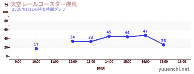 2026/01/11の待ち時間グラフ (天空レールコースター疾風)