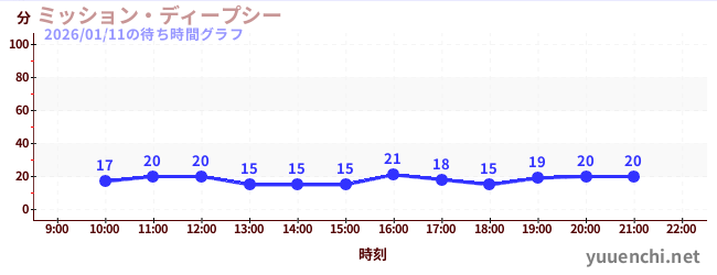 2026/01/11の待ち時間グラフ (ミッション・ディープシー)