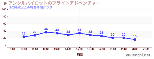 2026/01/11の待ち時間グラフ (アンクルパイロットのフライトアドベンチャー)