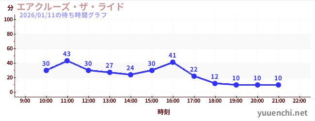 2026/01/11の待ち時間グラフ (エアクルーズ・ザ・ライド)