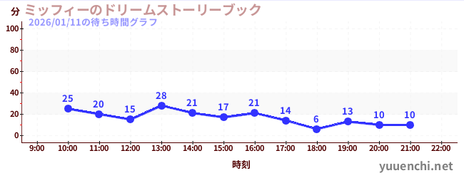 2026/01/11の待ち時間グラフ (ミッフィーのドリームストーリーブック)
