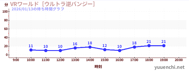 2026/01/13の待ち時間グラフ (VRワールド[ウルトラ逆バンジー])