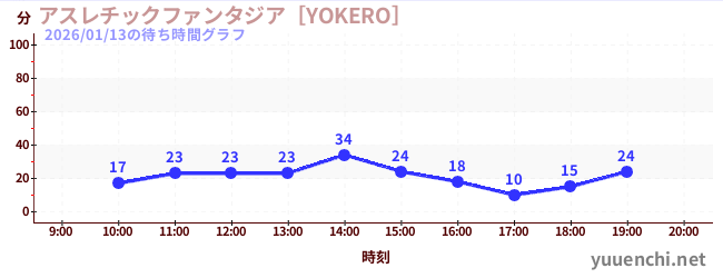 2026/01/13の待ち時間グラフ (アスレチックファンタジア[YOKERO])